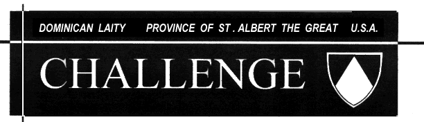 Private members are asked to mail their annual dues payments directly to the Dominican Laity Office; P. O. Box 85451; Racine, WI 53408-5451. If on a fixed income, please pay what you can. Even paying $5 for the Challenge subscription is helpful.